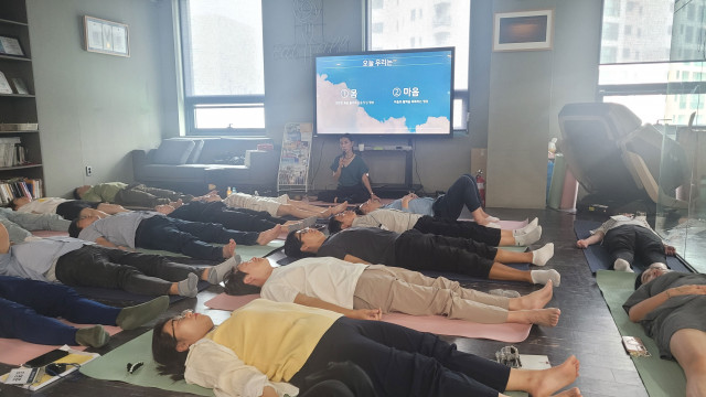 목록 잇올그룹 임직원 대상 마음챙김 명상 프로그램 페이지 정보 작성자 최고관리자 댓글 0건 조회 673회 작성일 24.09.12 본문 잇올그룹 마음챙김 명상 기반의 직장인 맨탈 헬스 이전글 '24 삼성전자 장기근속자 행복캠프 24.10.08 목록 다음글 '23 삼성전자 장기근속자 행복캠프 24.08.06